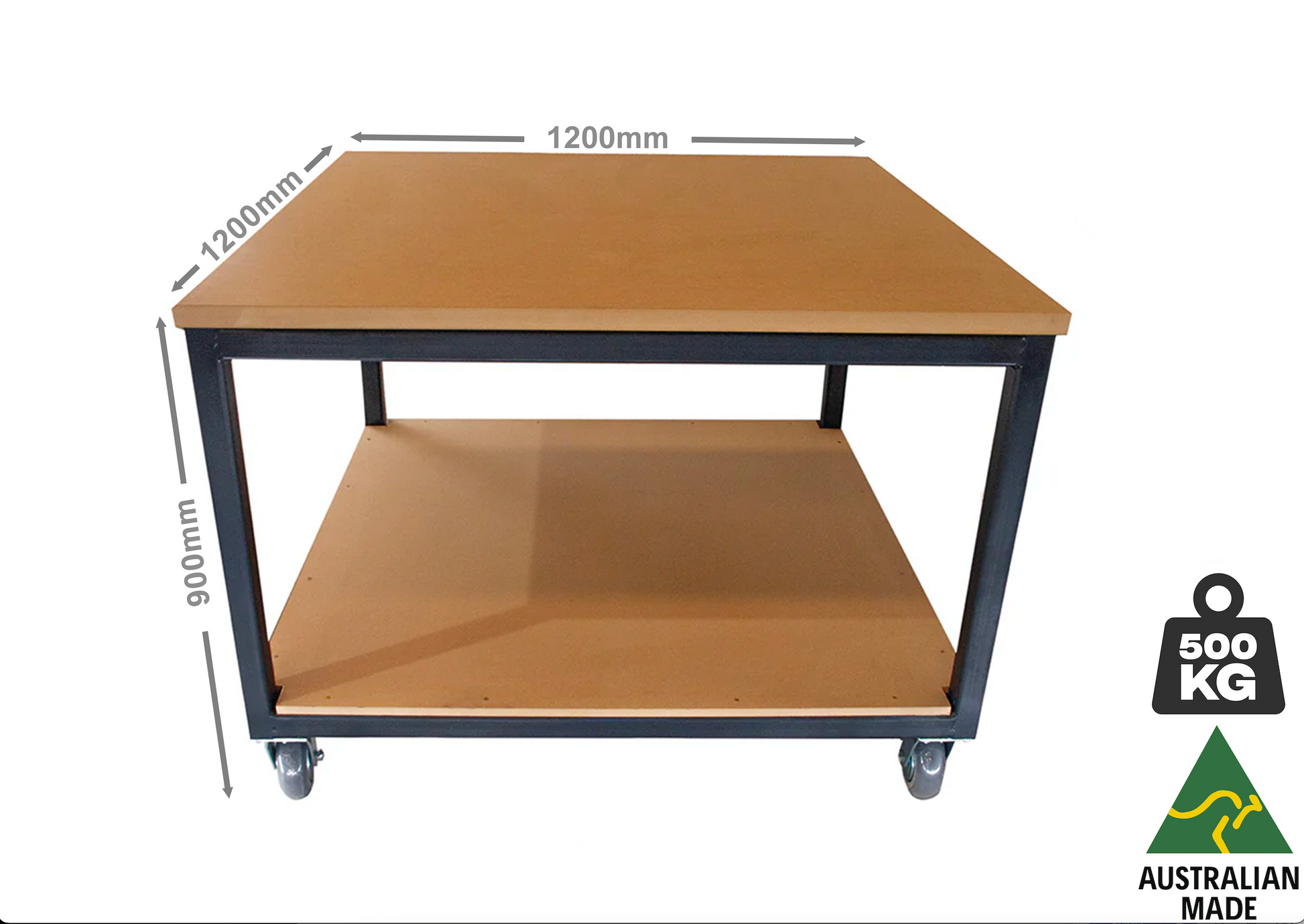 Heavy-Duty Mobile Workbench with an MDF benchtop & MDF shelf.